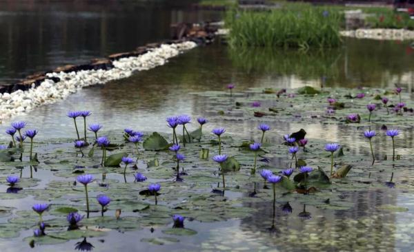 湖中種植了各種水草和水生花卉。